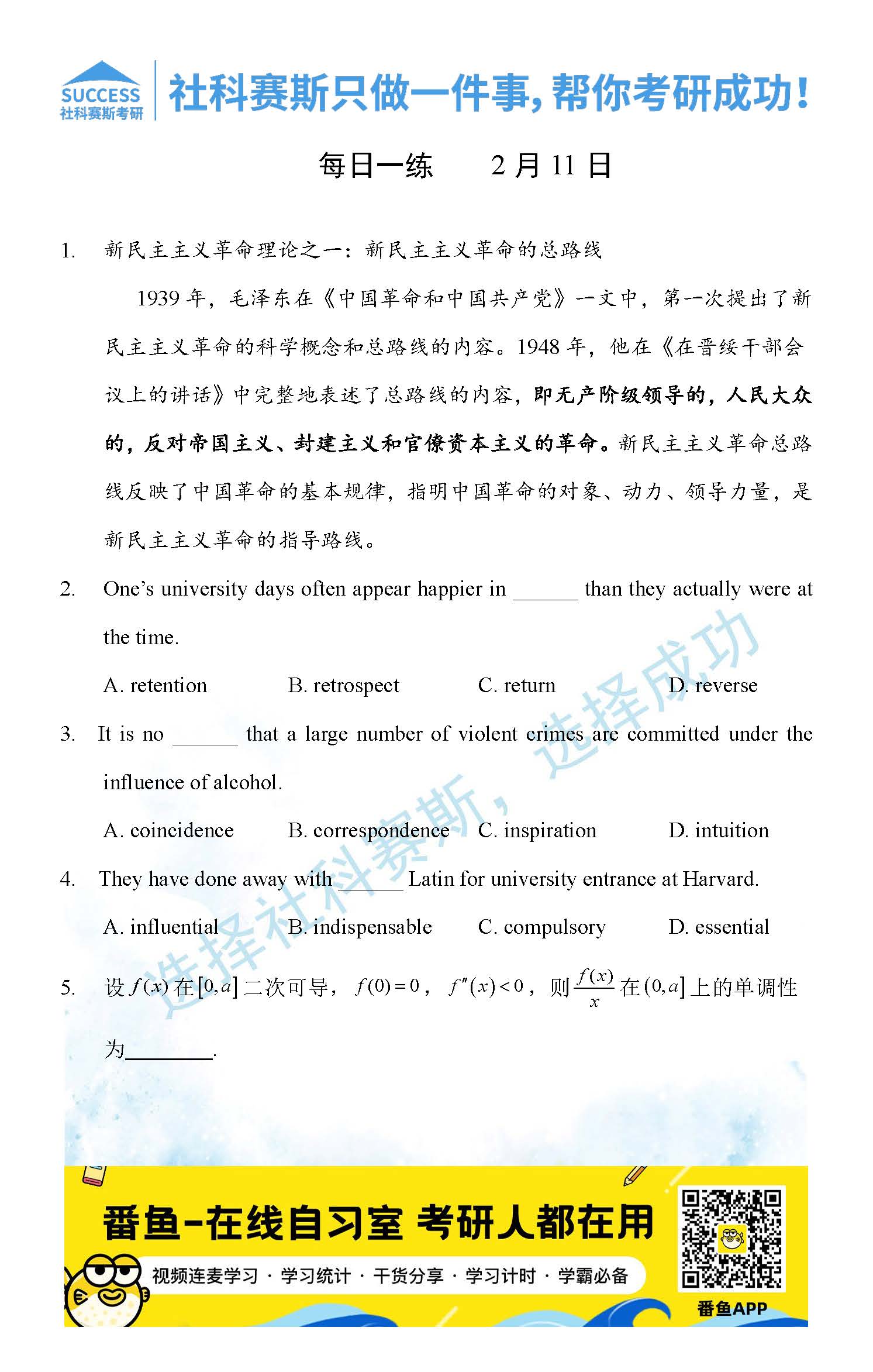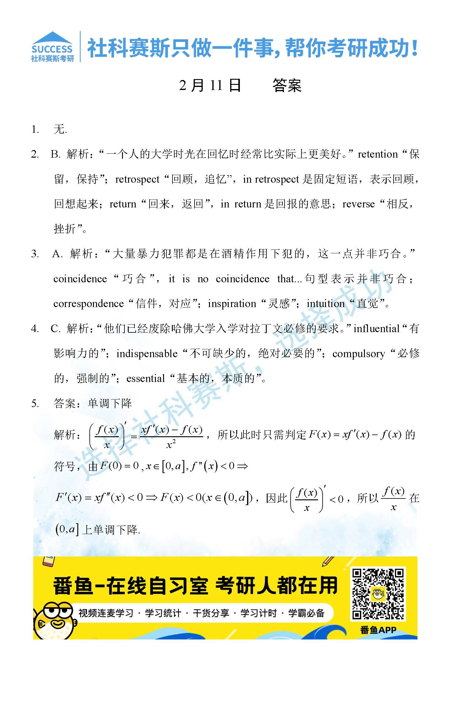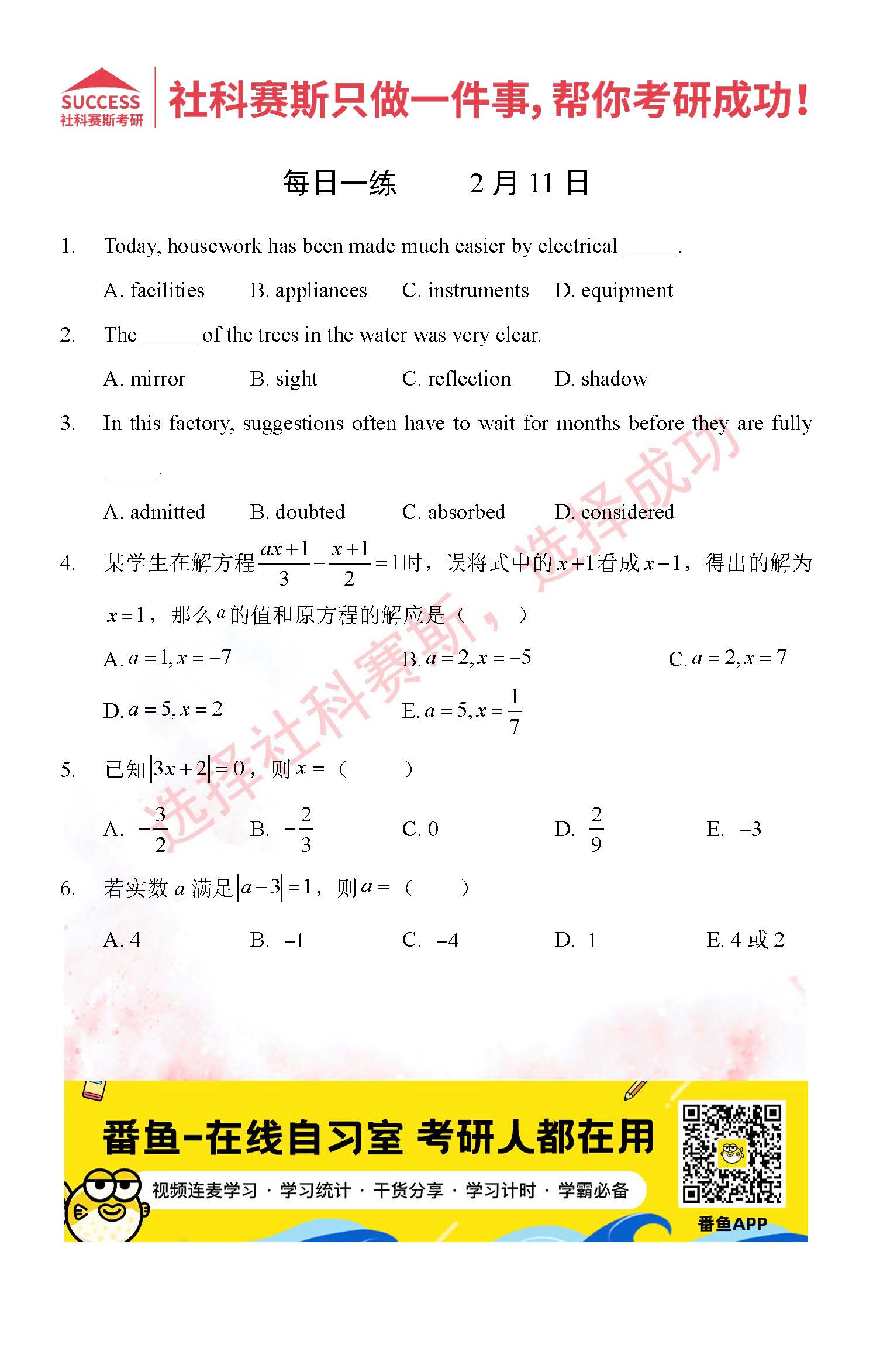 導(dǎo)讀:考研是一場持久戰(zhàn),保持良好的學(xué)習(xí)習(xí)慣,是能確保復(fù)習(xí)高效的關(guān)鍵。今天社科賽斯MBA備考網(wǎng)小編整理了“2022管理類聯(lián)2月11日每日一練及答案”的內(nèi)容,希望能對(duì)廣大考生有所幫助。