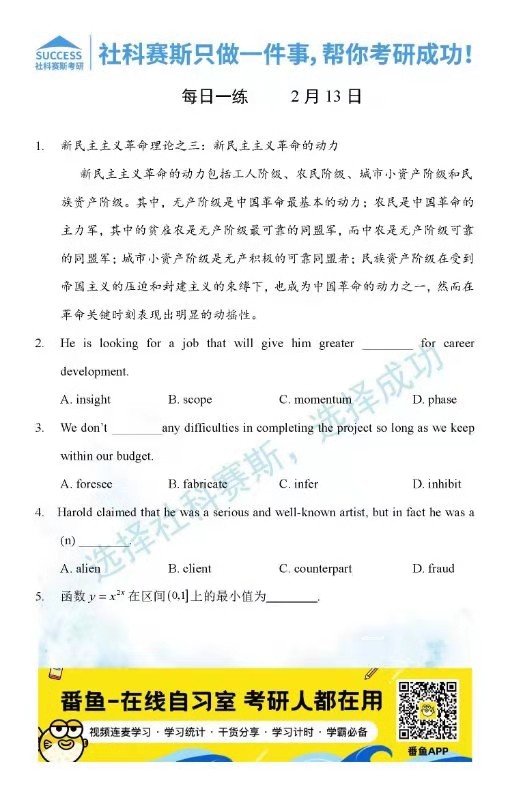 導讀:考研是一場持久戰(zhàn),保持良好的學習習慣,是能確保復習高效的關鍵。今天社科賽斯MBA備考網(wǎng)小編整理了“2022管理類聯(lián)2月13日每日一練及答案”的內(nèi)容,希望能對廣大考生有所幫助。