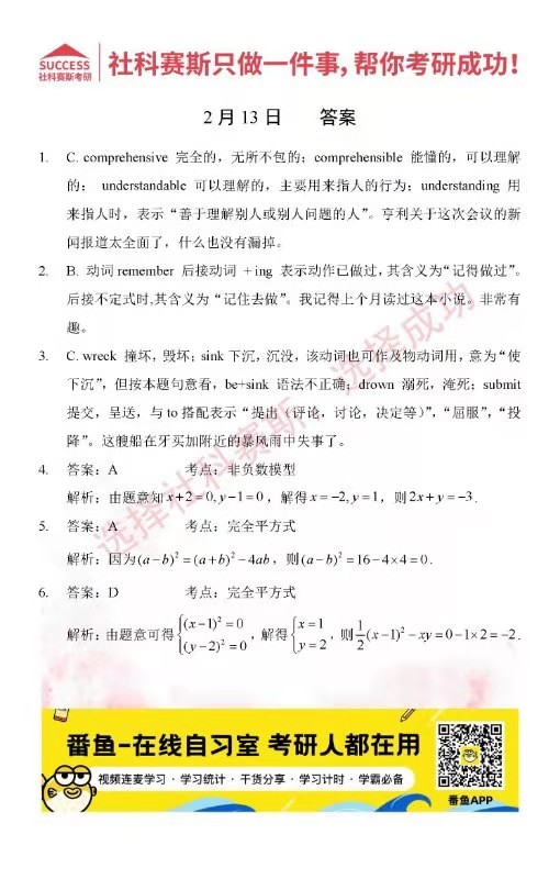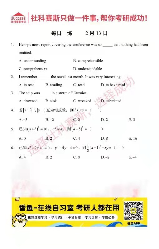 首頁> 管理類聯(lián)考每日一練 > 2022管理類聯(lián)考2月13日每日一練及答案