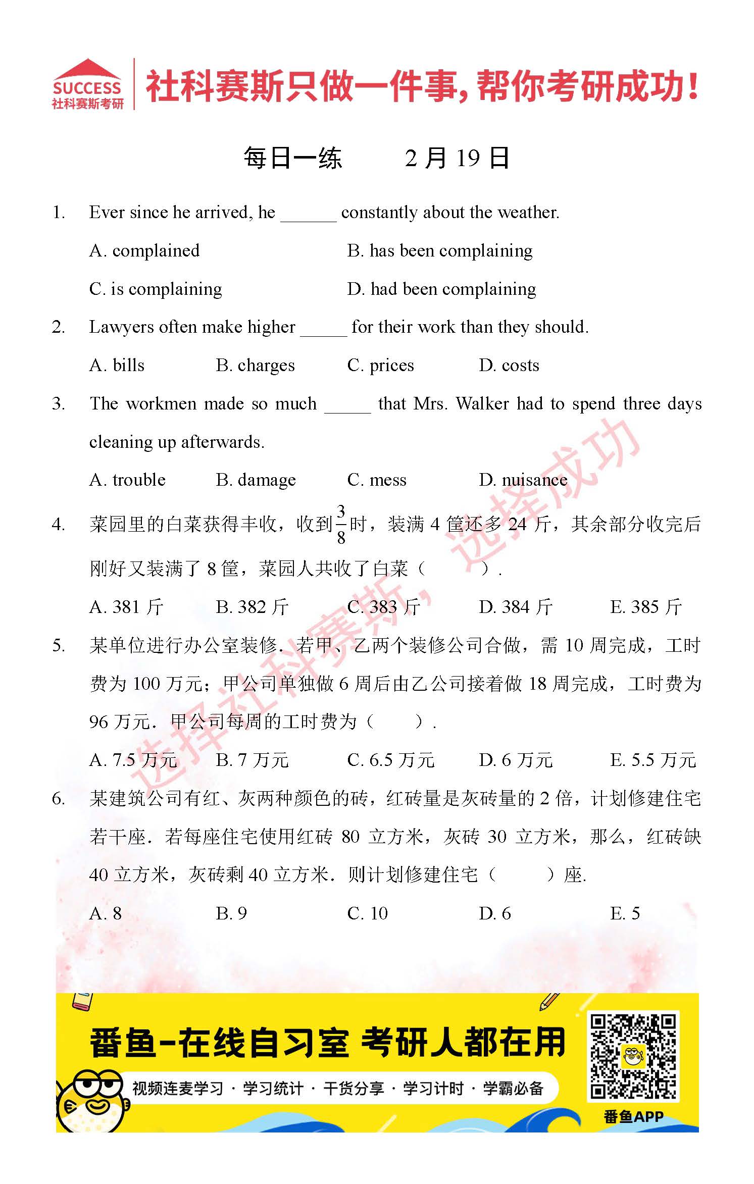 導(dǎo)讀:考研是一場持久戰(zhàn),保持良好的學(xué)習(xí)習(xí)慣,是能確保復(fù)習(xí)高效的關(guān)鍵。今天社科賽斯MBA備考網(wǎng)小編整理了“2022管理類聯(lián)2月19日每日一練及答案”的內(nèi)容,希望能對(duì)廣大考生有所幫助。