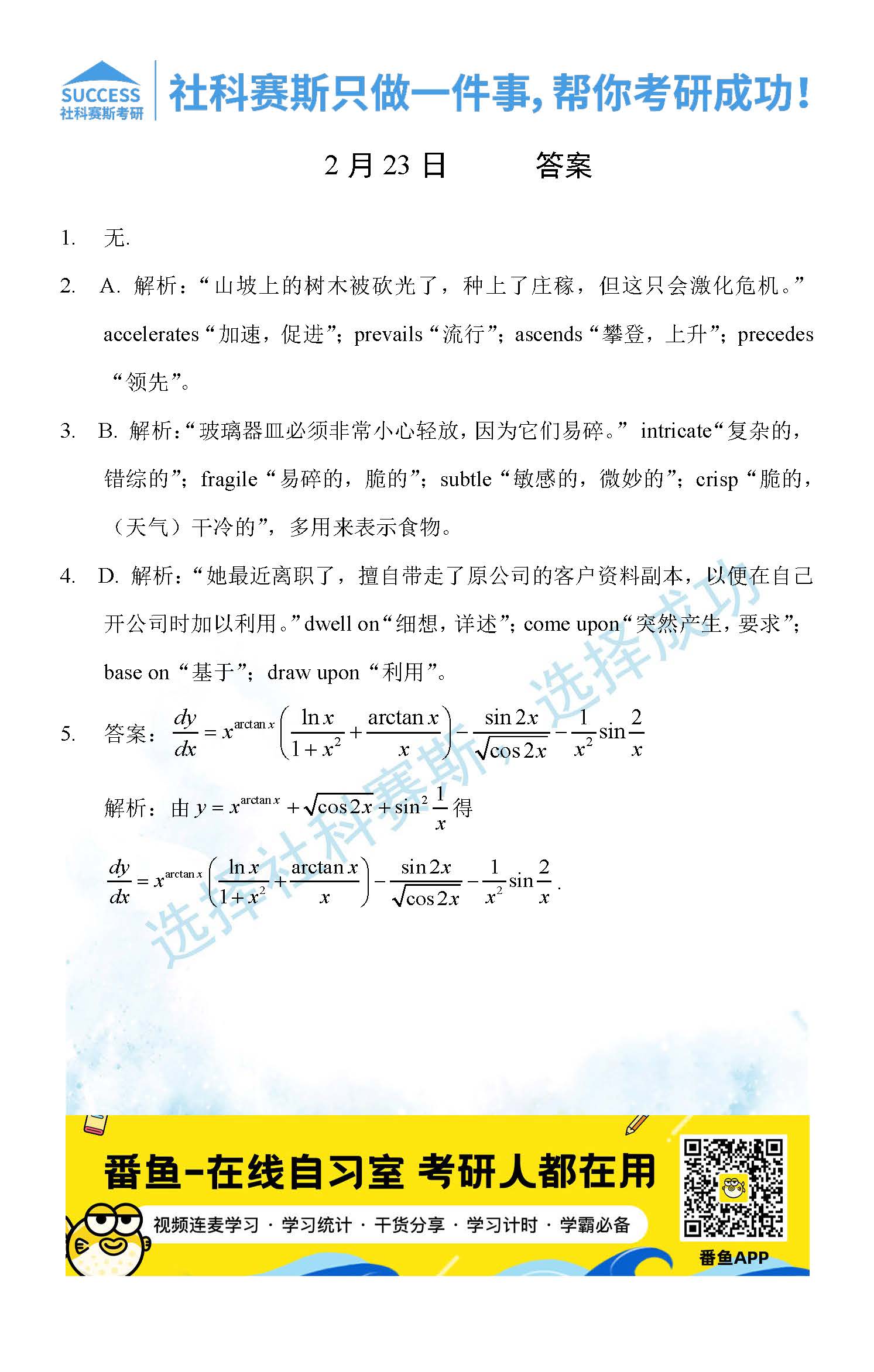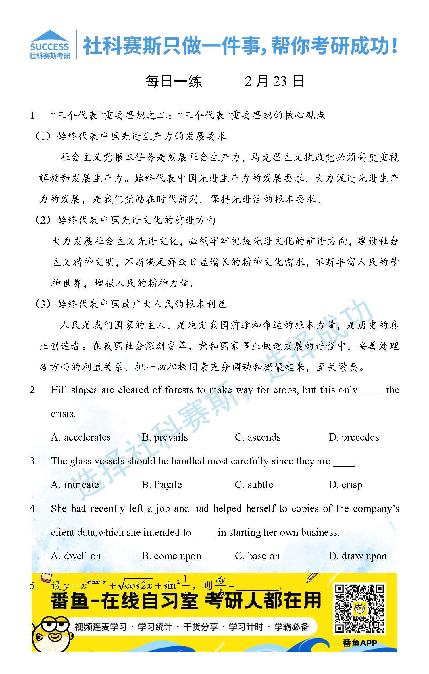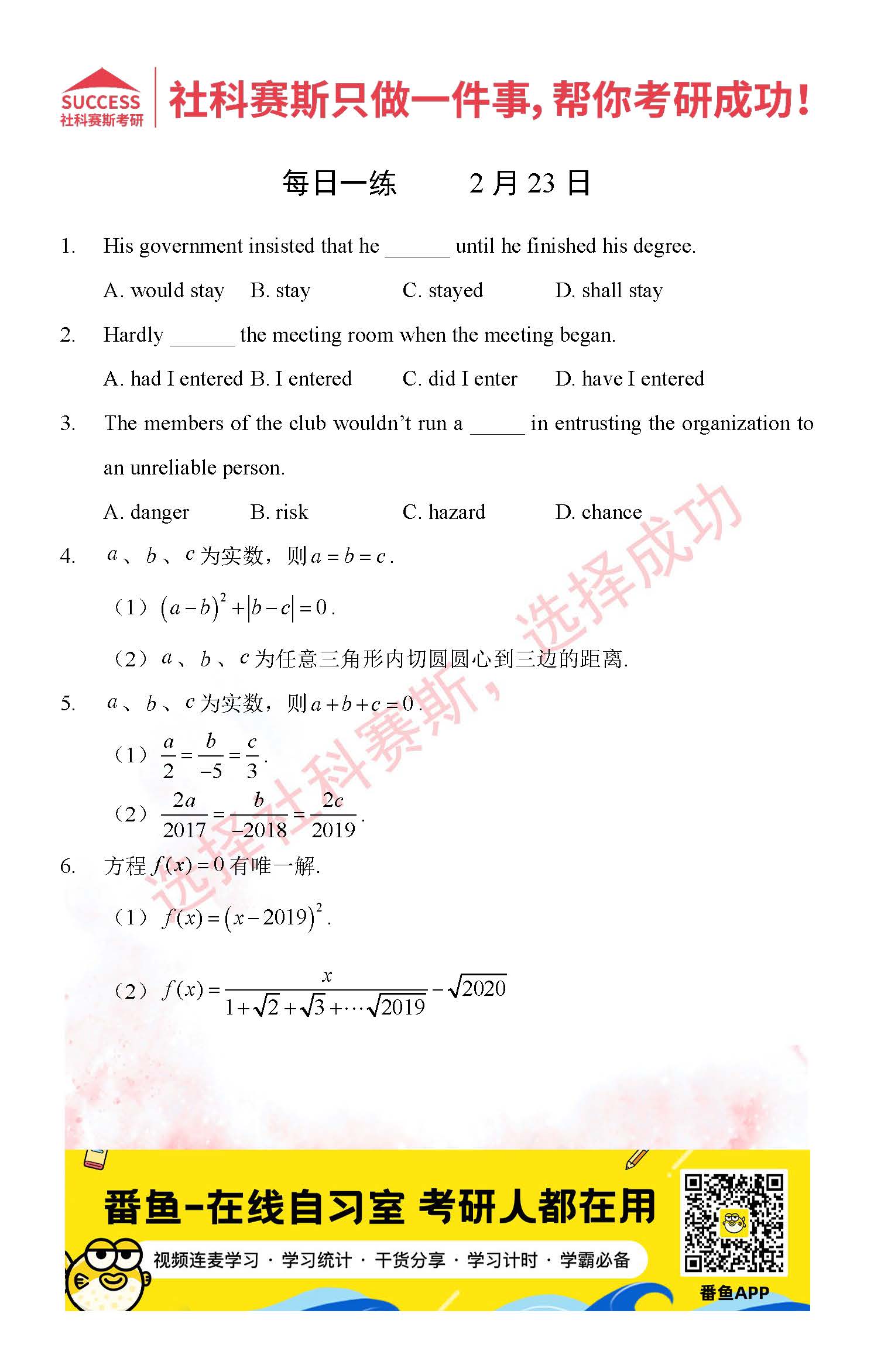 導(dǎo)讀:考研是一場(chǎng)持久戰(zhàn),保持良好的學(xué)習(xí)習(xí)慣,是能確保復(fù)習(xí)高效的關(guān)鍵。今天社科賽斯MBA備考網(wǎng)小編整理了“2022管理類聯(lián)2月23日每日一練及答案”的內(nèi)容,希望能對(duì)廣大考生有所幫助。