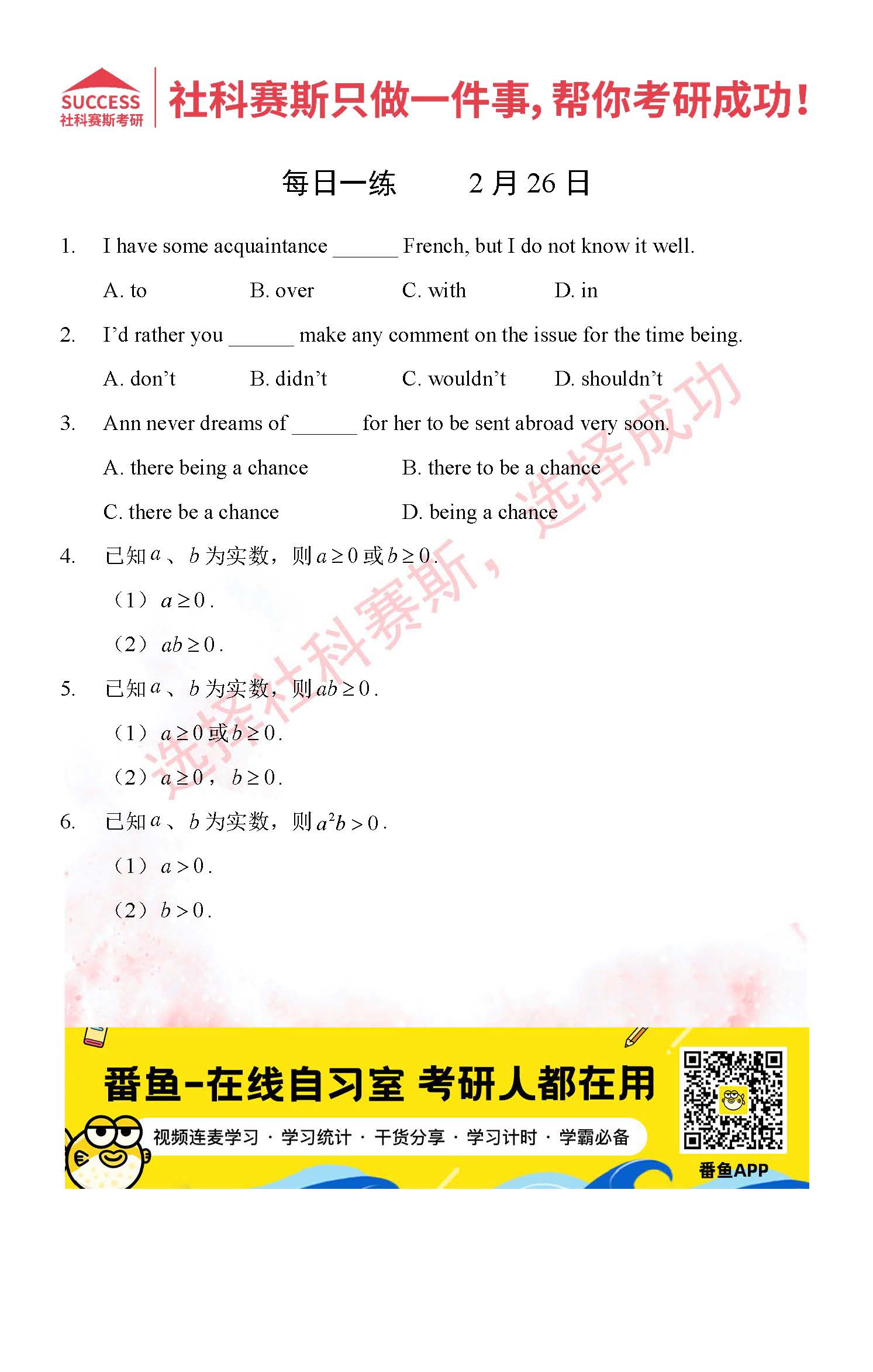 首頁> 管理類聯(lián)考每日一練 > 2022管理類聯(lián)考2月26日每日一練及答案