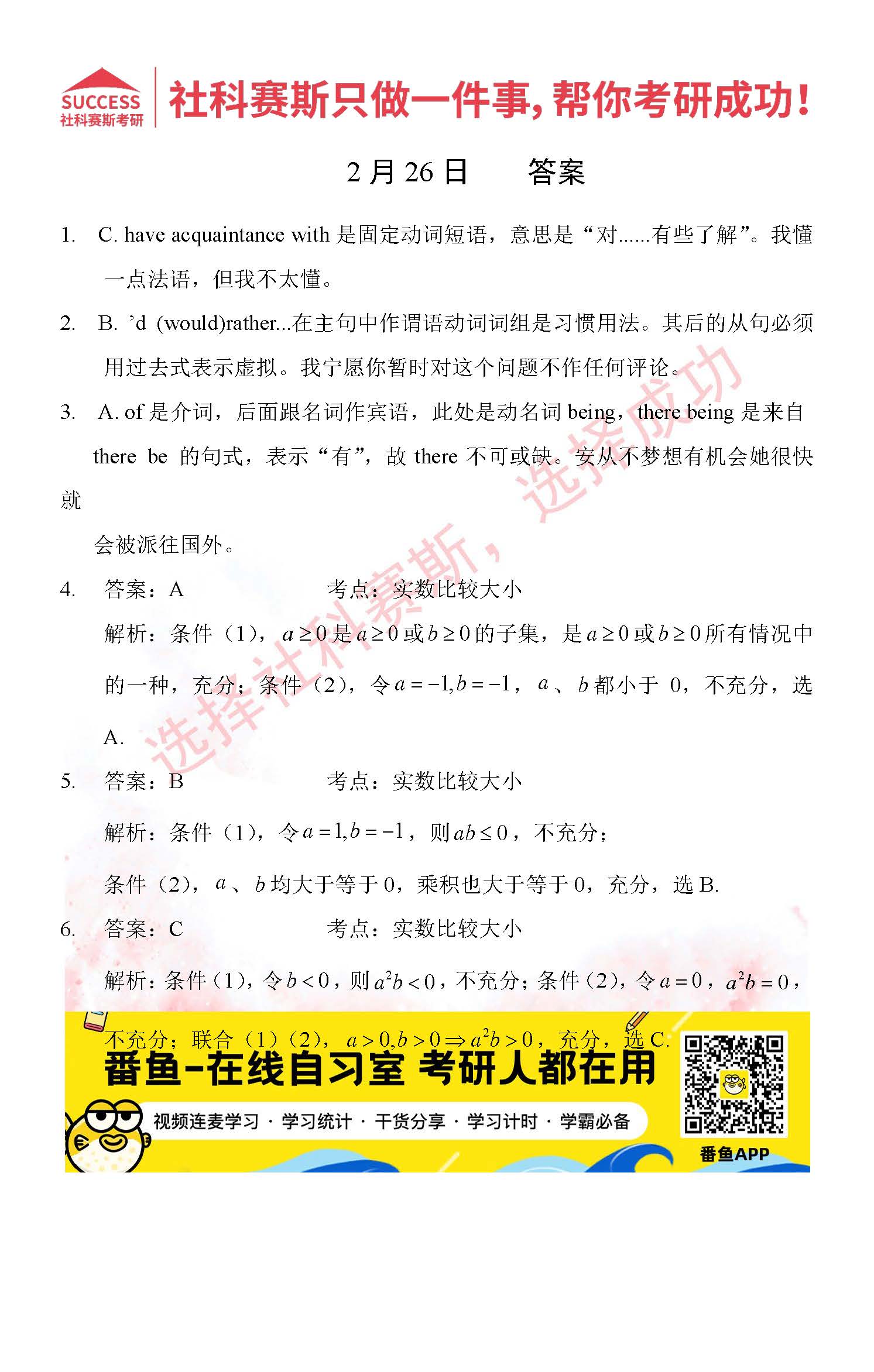 導讀:考研是一場持久戰(zhàn),保持良好的學習習慣,是能確保復習高效的關(guān)鍵。今天社科賽斯MBA備考網(wǎng)小編整理了“2022管理類聯(lián)2月26日每日一練及答案”的內(nèi)容,希望能對廣大考生有所幫助。