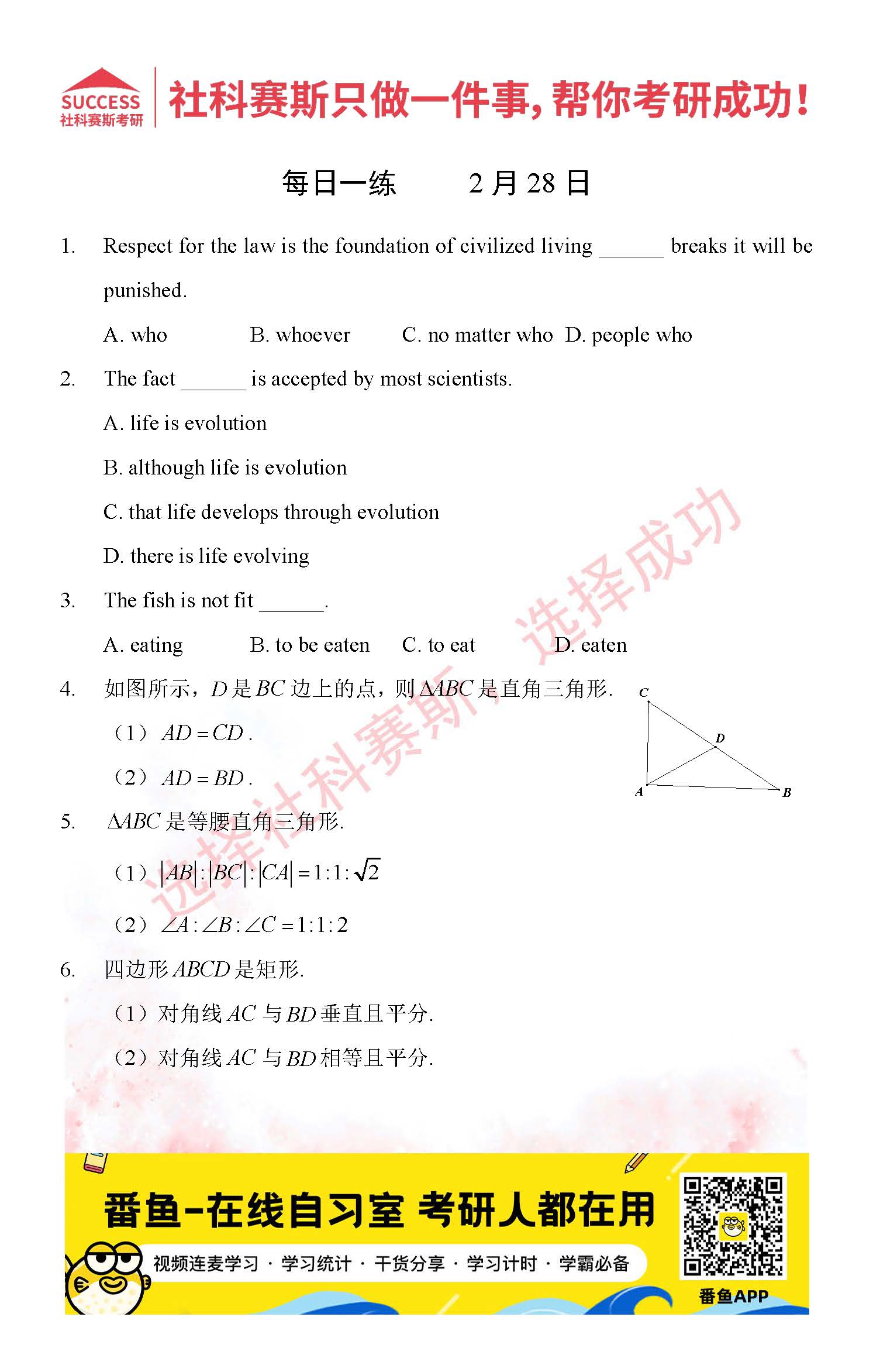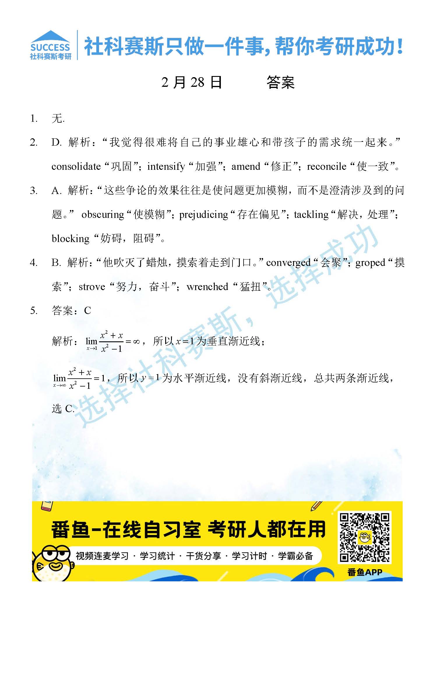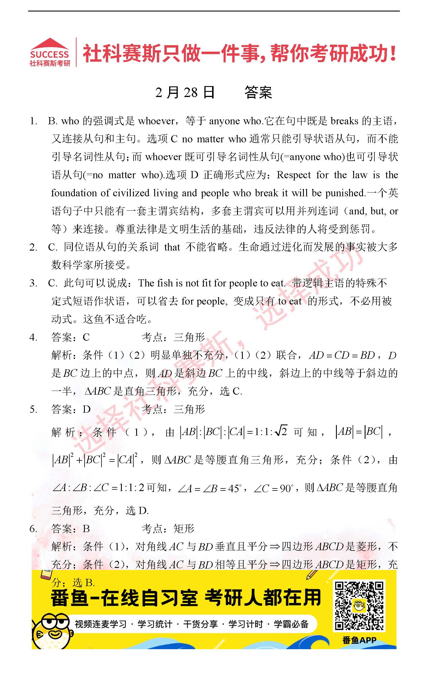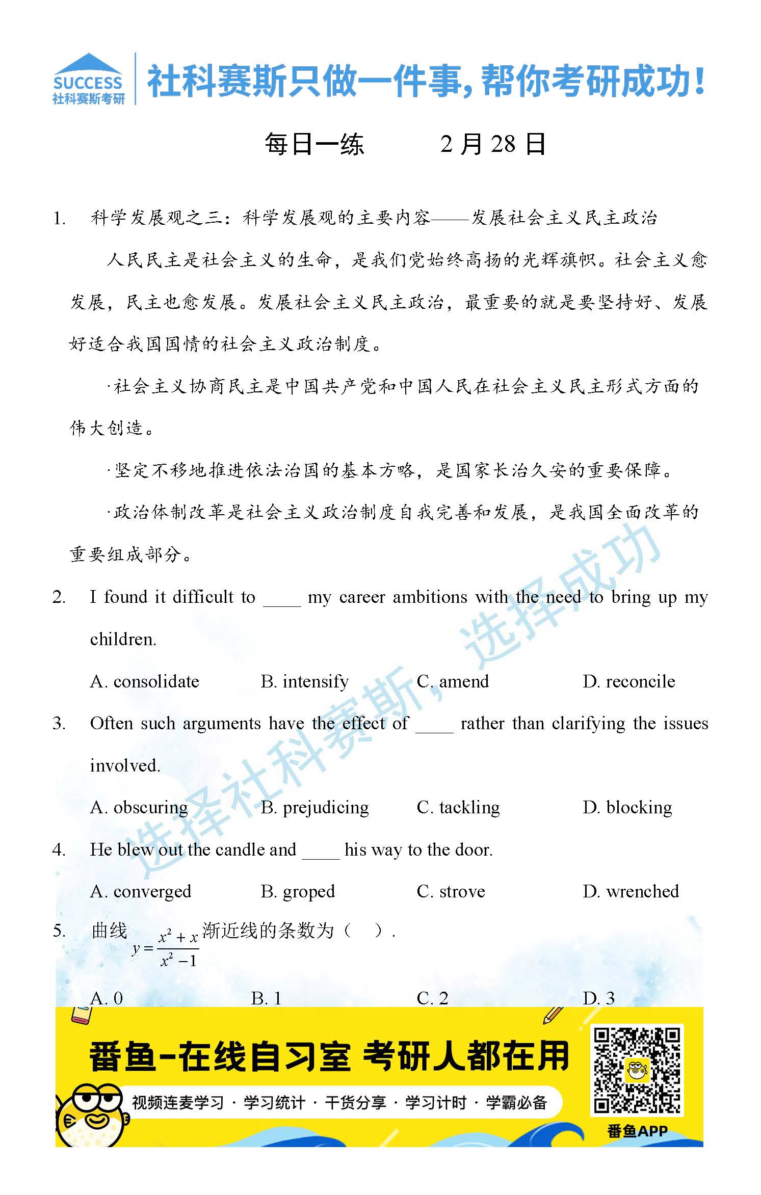 導(dǎo)讀:考研是一場(chǎng)持久戰(zhàn),保持良好的學(xué)習(xí)習(xí)慣,是能確保復(fù)習(xí)高效的關(guān)鍵。今天社科賽斯MBA備考網(wǎng)小編整理了“2022管理類聯(lián)2月28日每日一練及答案”的內(nèi)容,希望能對(duì)廣大考生有所幫助。