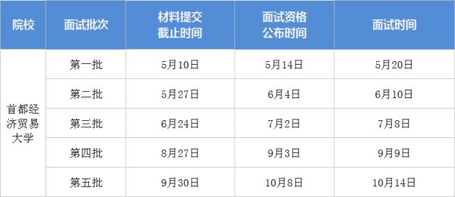 首經(jīng)貿(mào)2019MBA提前面試批次: