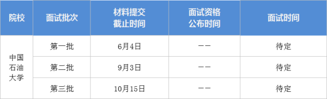 中石油(北京)2019MBA提前面試時間如下: