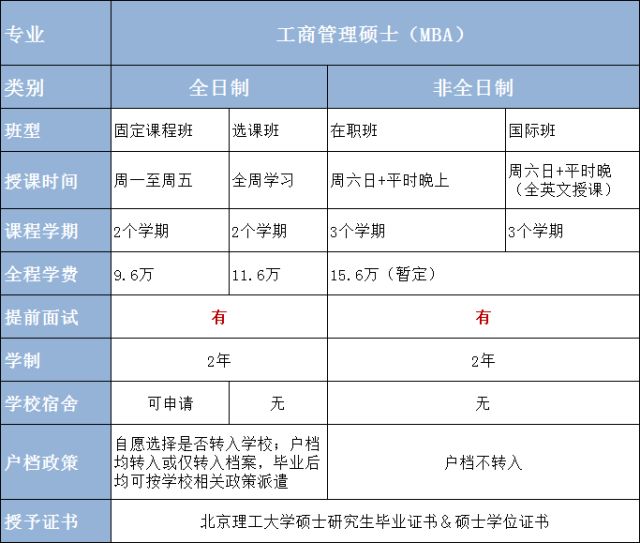 北京航空航天大學(xué)2019年MBA計劃招生400人,全日制50人,周一至周五全天上課,學(xué)制2年;非全日制350人,周末班是周六、周日全天上課,集中班是每月集中2次授課,每次授課時間為周五下午、晚上及周六、日全天,學(xué)制2年。