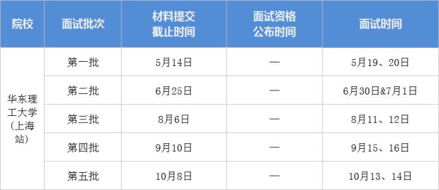 華東理工大學(xué)2019MBA提前面試批次如下: