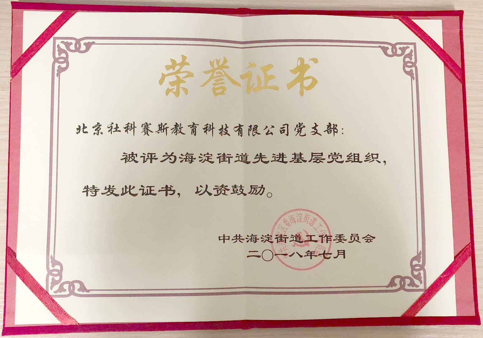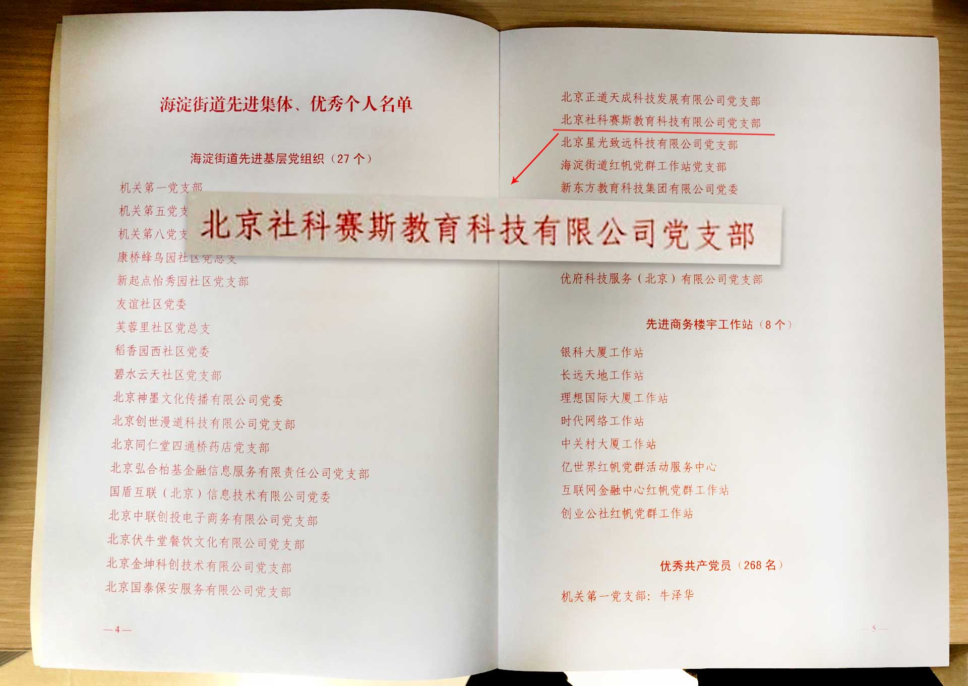 北京北京社科賽斯黨支部被評為海淀街道先進基層黨組織