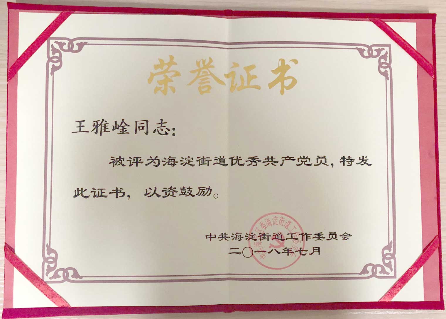 北京北京社科賽斯黨支部組織委員王雅崯被評為海淀街道優(yōu)秀共產(chǎn)黨員