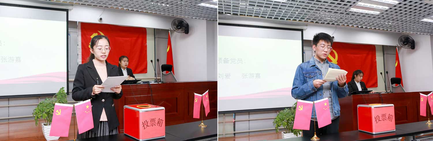 李發(fā)進書記宣讀轉(zhuǎn)正結(jié)果:會議表決通過劉愛、張游嘉轉(zhuǎn)為正式黨員的決議。并對兩位同志提出期許。他說,希望兩位同志今后無論在思想上還是行動上,不僅要積極學習黨的先進理論知識,還要踐行黨員義務(wù),時刻以黨員身份要求自身,積極發(fā)揮模范帶頭作用。