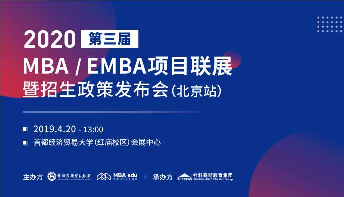 為幫助考生與院校間搭建透明、互信、深入了解的交流平臺(tái),打破區(qū)域的影響,實(shí)現(xiàn)項(xiàng)目齊全盡分享,直面院校知真相的目的。4月20日,中國MBA教育網(wǎng)將攜手首都經(jīng)濟(jì)貿(mào)易大學(xué)MBA教育中心,聯(lián)合全國30所商學(xué)院主辦第三屆MBA教育展暨2020招生政策發(fā)布會(huì)(北京站),屆時(shí)各優(yōu)秀商學(xué)院MBA招生辦主任親臨現(xiàn)場(chǎng),為廣大考生提供真實(shí)、實(shí)用的報(bào)考新政策,3小時(shí)揭開全國知名商學(xué)院MBA項(xiàng)目“神秘面紗”。