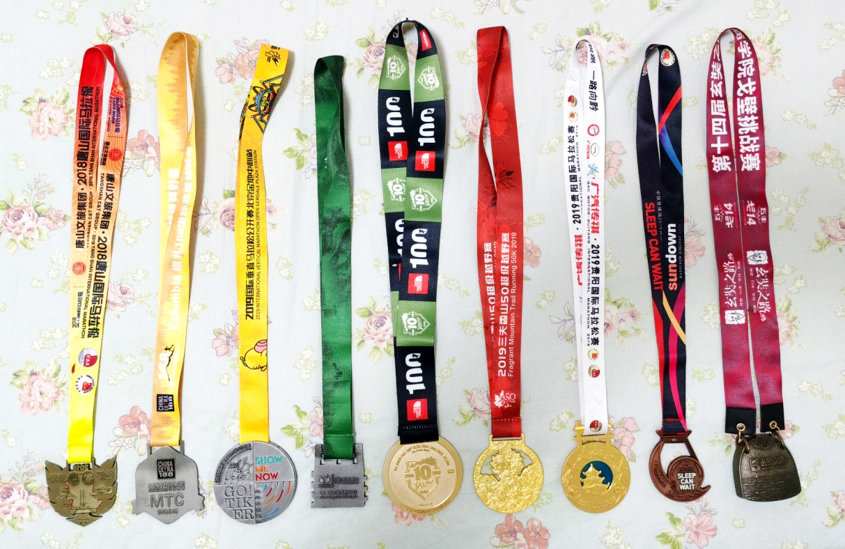 時(shí)間順序:善行者50公里越野、唐山半馬、TNF50公里越野、崇禮70公里越野、青島夜馬、唐山全馬、戈十四挑戰(zhàn)賽、貴陽(yáng)全馬、香山50公里越野,希望有生之年能夠把獎(jiǎng)牌數(shù)量擴(kuò)充到三位數(shù),請(qǐng)大家為我加油打氣哦。