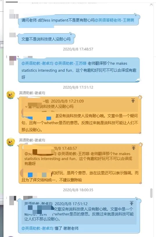 自習(xí)時間,助教老師在線答疑,有問題隨時提問,不僅能解決自己的問題,而且可以看到每個人的共性問題。