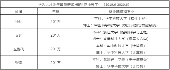 華為從去年開(kāi)始這項(xiàng)計(jì)劃,目前全球只有4人拿到天才少年的最高年薪。這些天才無(wú)一例外,都是博士畢業(yè)。