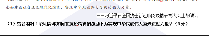 題目:(2)偉大抗疫精神將激勵新時代青年如何負(fù)擔(dān)民族復(fù)興的時代使命?