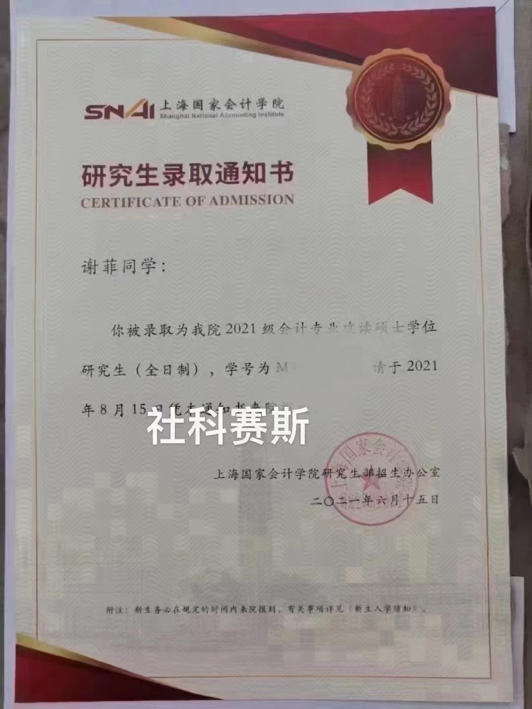 上海國家會(huì)計(jì)學(xué)院碩士研究生錄取通知書