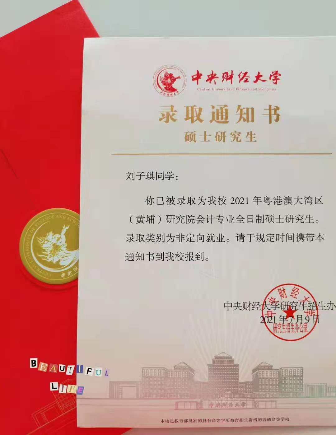 中央財(cái)經(jīng)大學(xué)碩士研究生錄取通知書