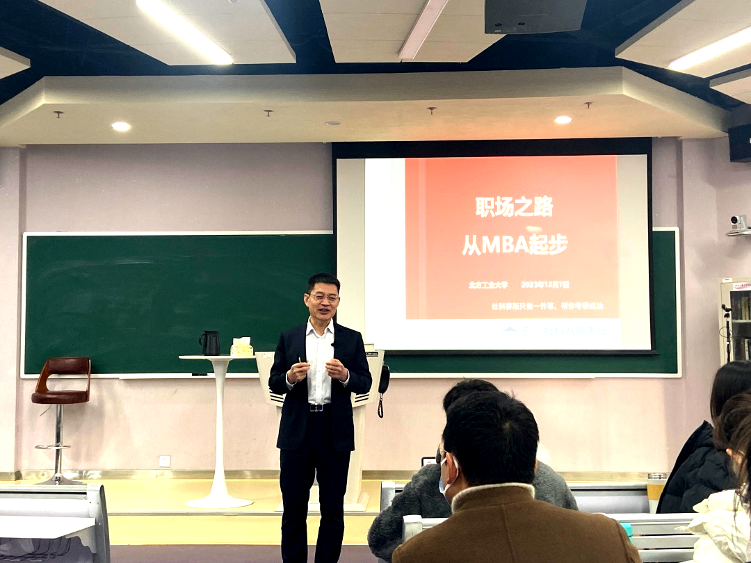 12月7日上午,應(yīng)北方工業(yè)大學(xué)MBA教育中心邀請,社科賽斯考研總裁、黨支部書記李發(fā)進(jìn)先生為23級MBA新生帶來《職場之路,從MBA起步》專題講座!