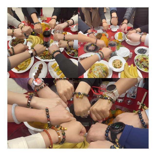 開餐前,最令人期待的環(huán)節(jié)如期而至——劉春茶校長親手將上午在雍和宮請回的開光手串進(jìn)行了簡單介紹,并安排幾位咨詢顧問老師送到每一位學(xué)員手中。“這串手串帶著雍和宮的祈福,更帶著社科賽斯的祝福,希望它能陪你們安心走進(jìn)考場,發(fā)揮出最好的水平。”劉校長的話語樸實(shí)而有力量,接過手串的學(xué)員們臉上都洋溢著感動與信心。