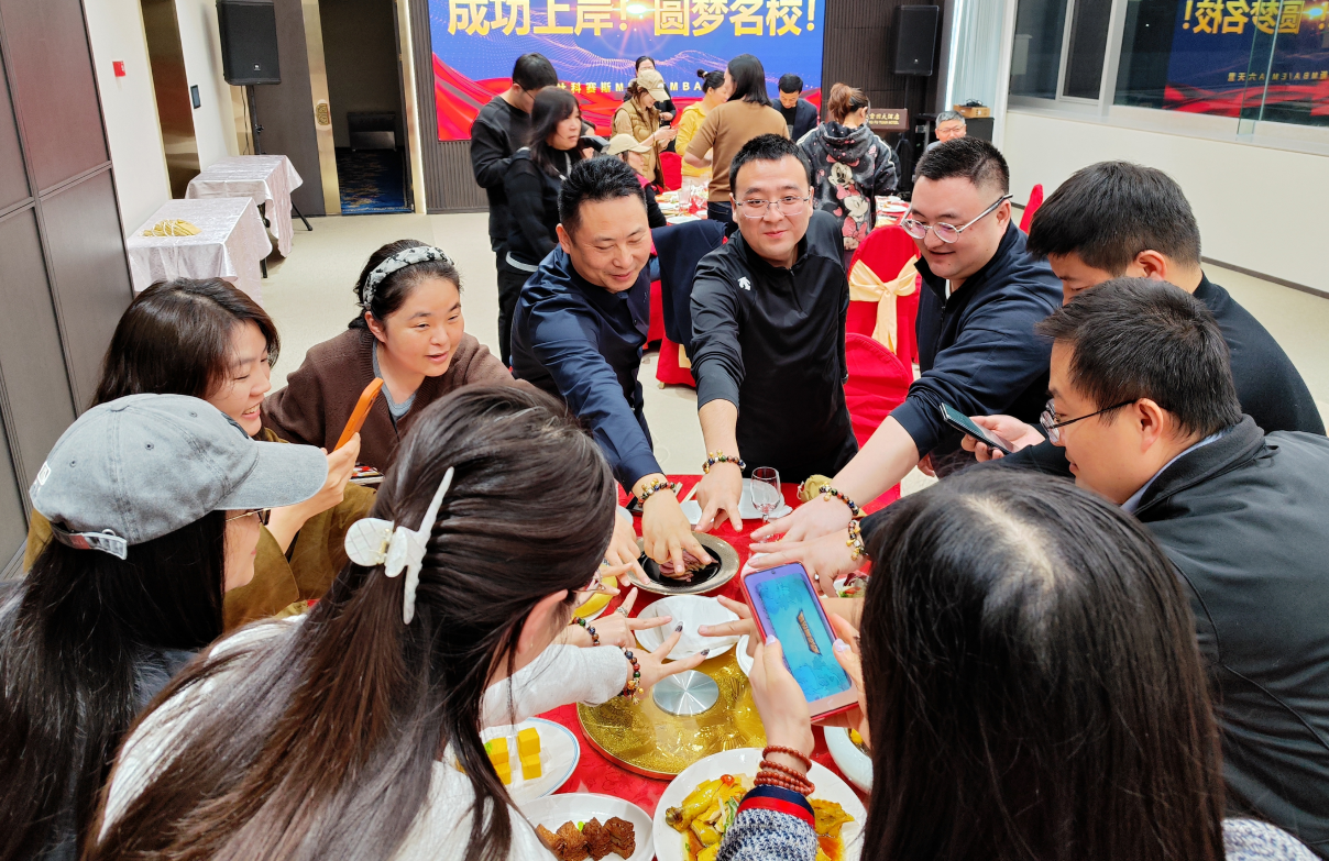如果說上午的祈福是“隔空傳力”,那么晚上的六天營EMBA、MBA學(xué)員圓桌聚餐,便是把關(guān)懷直接送到學(xué)員身邊。當(dāng)天下午下課后,學(xué)員們陸續(xù)到場,熟悉的身影、親切的交流,讓整個聚餐現(xiàn)場暖意融融。