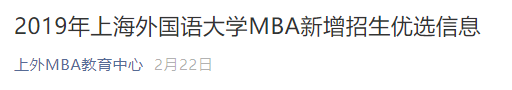導(dǎo)讀:小編給大家整理了“MBA接受調(diào)劑的院校| 上海外國(guó)語(yǔ)大學(xué)2019年接收MBA調(diào)劑的通知”,希望對(duì)需要調(diào)劑的同學(xué)有所幫助,以下為調(diào)劑通知原文: