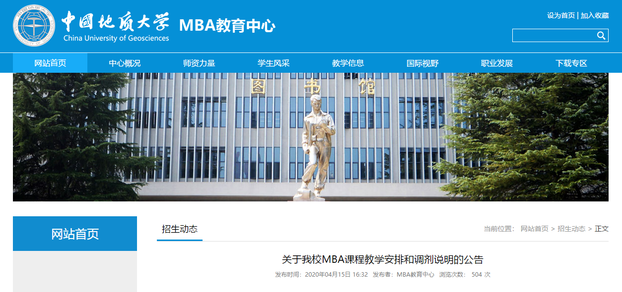 我校2020年招收的MBA學員的所有課程教學在中國地質大學(武漢)本部進行。