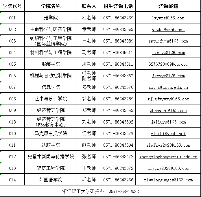 浙江理工大學(xué)各招生學(xué)院咨詢(xún)方式
