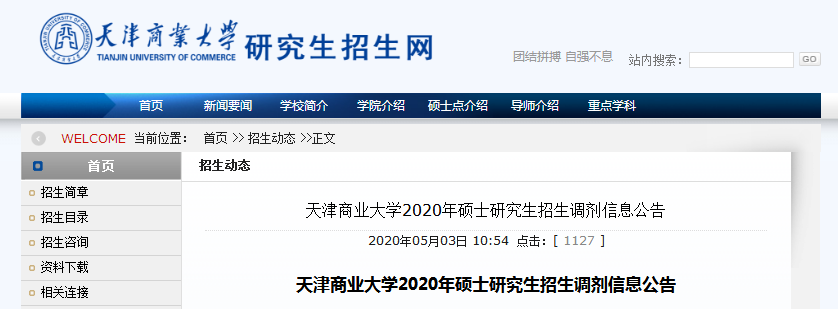 原標(biāo)題:天津商業(yè)大學(xué)2020年碩士研究生招生調(diào)劑信息公告