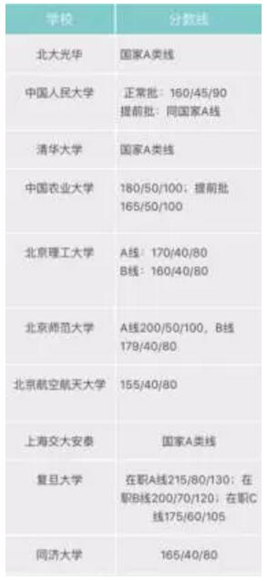 以下為2017年部分自主劃線院校