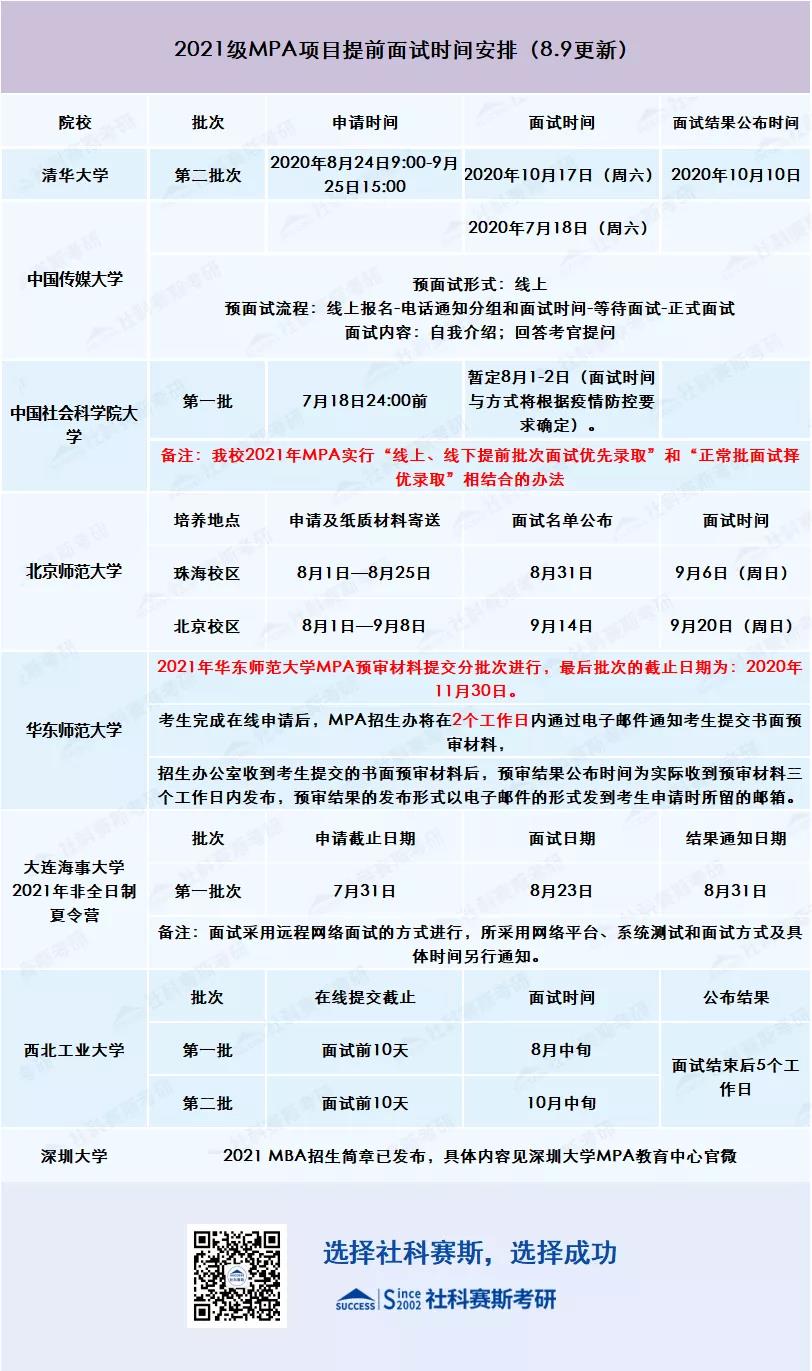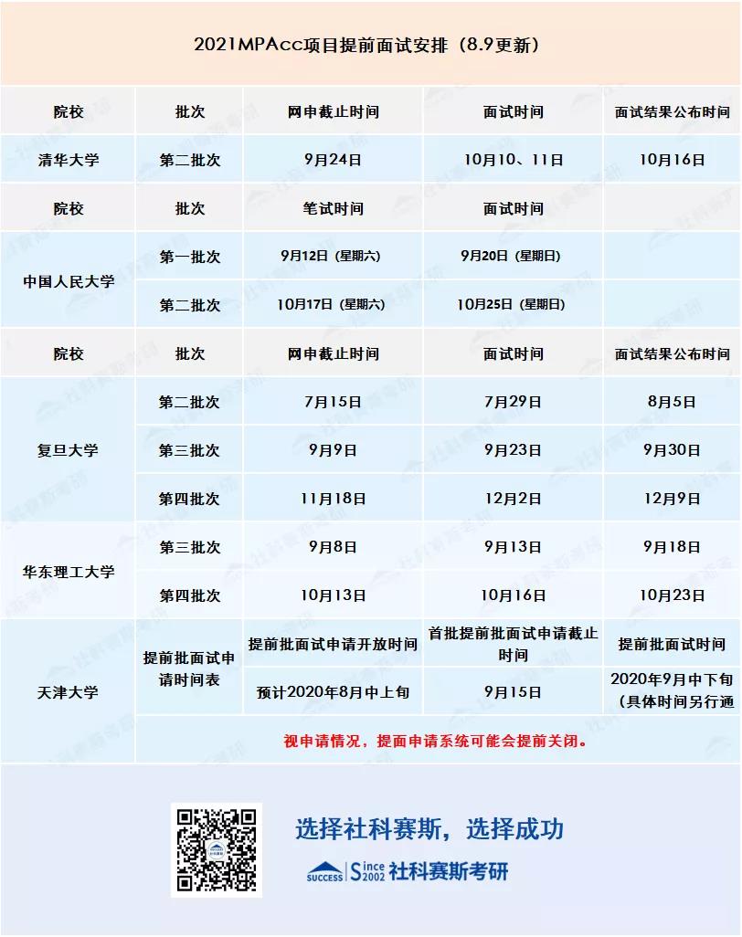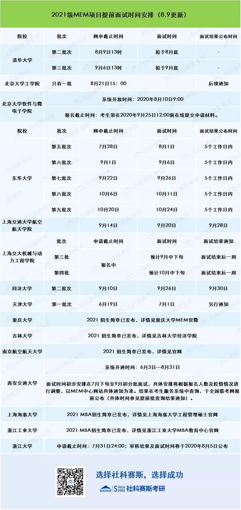 以上就是“8.9更新!2021各院校MBA/MEM/MPAcc提前面試時間匯總”的全部,希望能幫助正在備考的小伙伴們,祝你們都能考取心儀的院校!