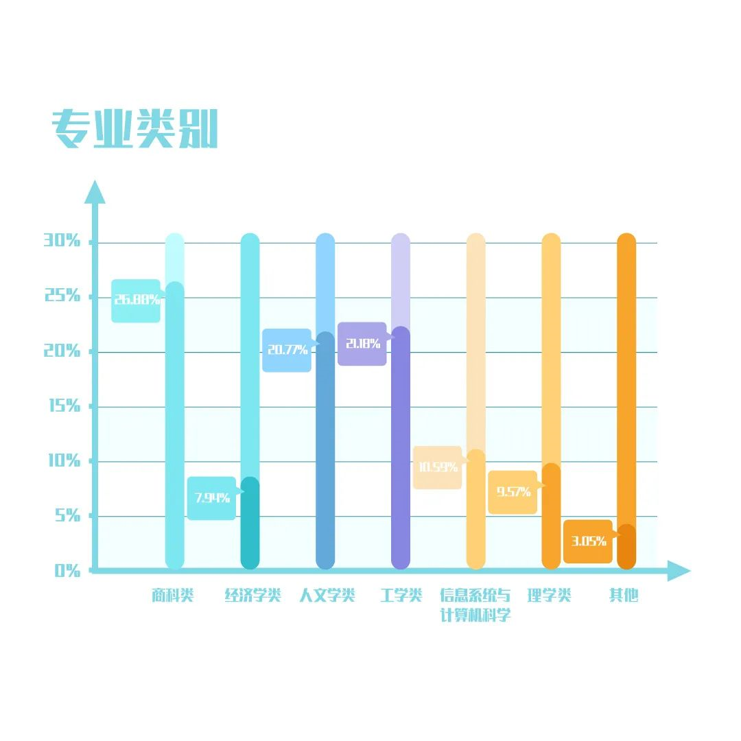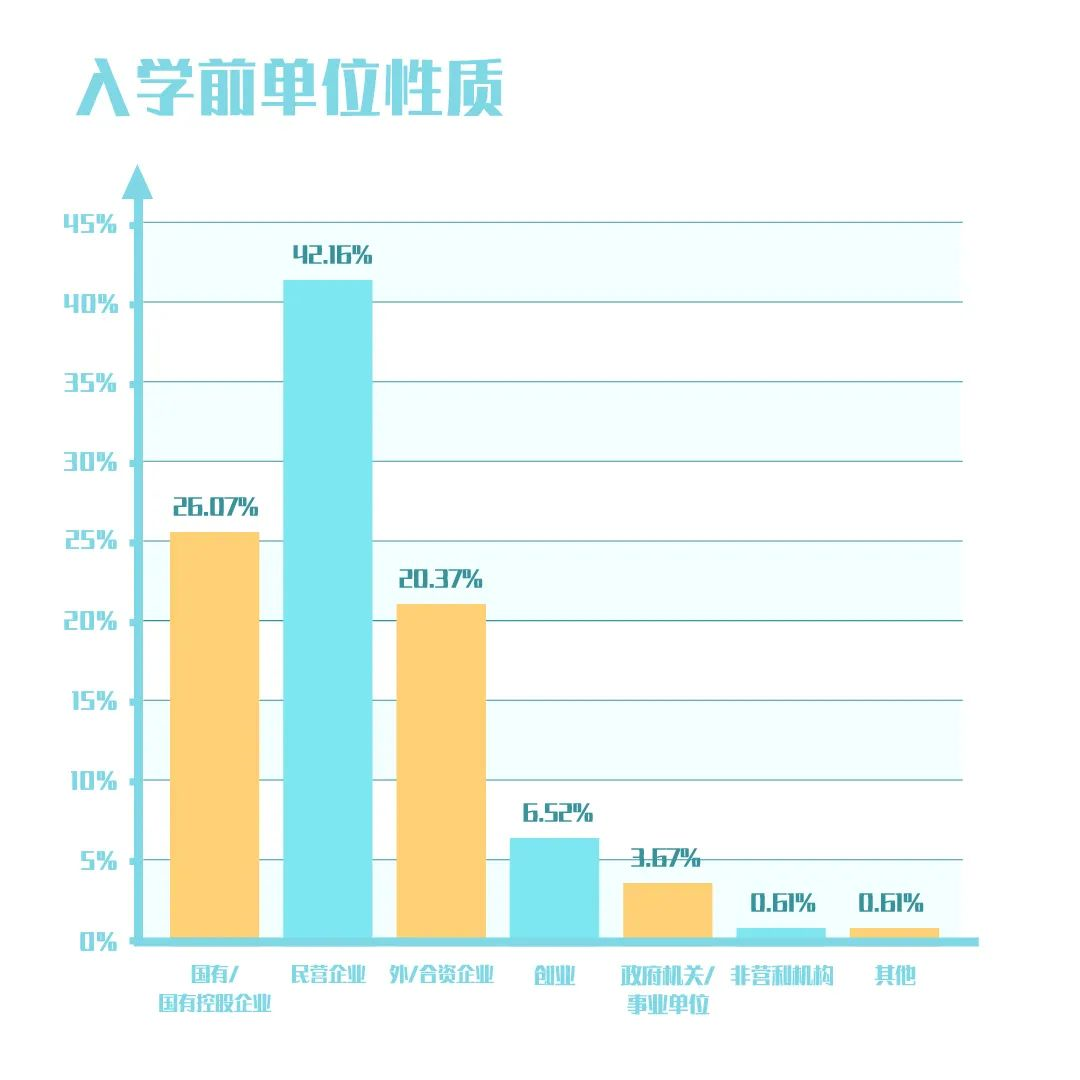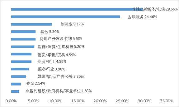 從入學(xué)前的行業(yè)分類來(lái)看,科技、新媒體、電信等新興行業(yè)和金融行業(yè)占比較高,制造業(yè)、房地產(chǎn)、醫(yī)藥等緊隨其后,商學(xué)院招收學(xué)生的行業(yè)背景、職能背景并不單一,而是注重其多元化的背景,因此,申請(qǐng)人對(duì)于行業(yè)、職能不要過(guò)于緊張!