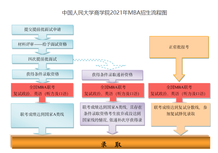 登錄中國(guó)人民大學(xué)商學(xué)院MBA項(xiàng)目中心網(wǎng)站“考生服務(wù)系統(tǒng)”,按照規(guī)定時(shí)間提交網(wǎng)上申請(qǐng)材料,學(xué)院將組織專家評(píng)審申請(qǐng)材料,擇優(yōu)給予提前面試資格并組織面試。面試后獲得條件錄取資格和條件錄取遞補(bǔ)資格的考生需參加2020年12月底舉行的全國(guó)聯(lián)考。