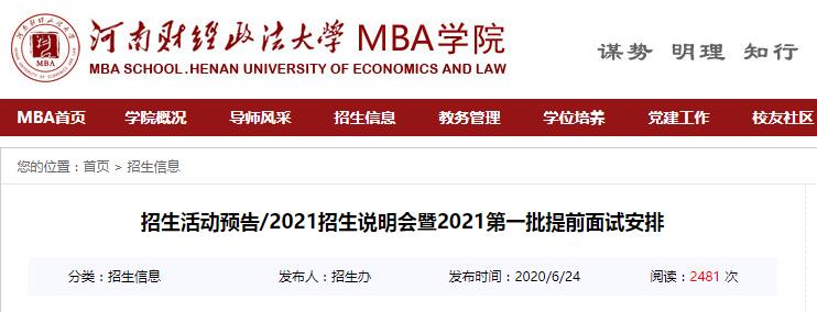 “河南財經(jīng)政法大學2021MBA招生說明會” 暨2021第一批提前面試將于2020年7月18日舉行,敬請關注!