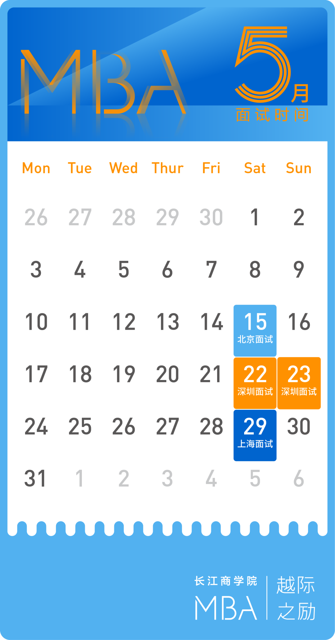 原文標題:長江MBA | 5月面試安排 北上深三地