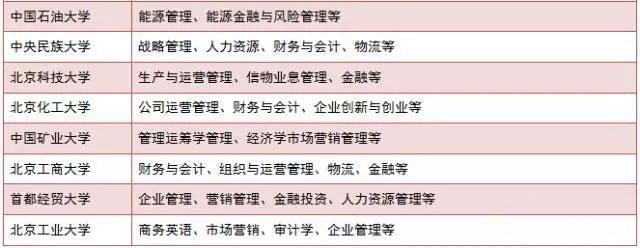 北京地區(qū)部分院校MBA方向參考如下:
