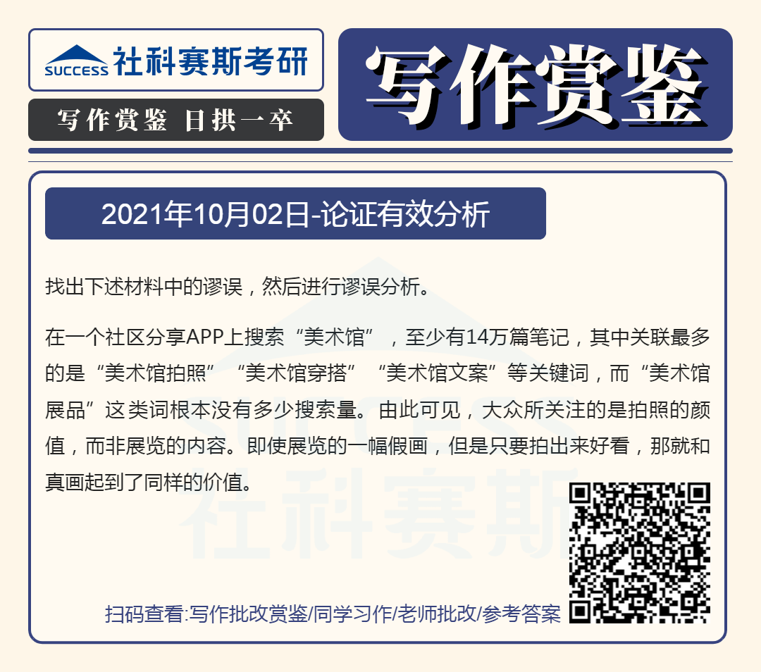 以上就是“2022MBA寫作:2022MBA聯(lián)考寫作批改賞鑒及參考答案(10月2日)”的全部?jī)?nèi)容,更多寫作精選習(xí)題,請(qǐng)持續(xù)關(guān)注社科賽斯MBA備考網(wǎng)!