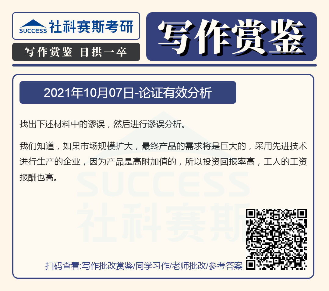 以上就是“2022MBA寫作:2022MBA聯(lián)考寫作批改賞鑒及參考答案(10月7日)”的全部內(nèi)容,更多寫作精選習(xí)題,請持續(xù)關(guān)注社科賽斯MBA備考網(wǎng)!