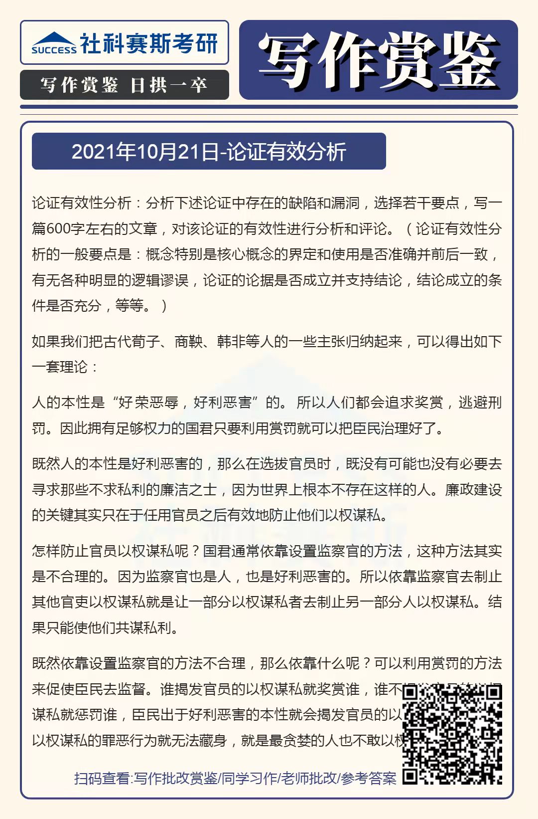 以上就是“2022MBA寫作:2022MBA聯(lián)考寫作批改賞鑒及參考答案(10月21日)”的全部內(nèi)容,更多寫作精選習(xí)題,請持續(xù)關(guān)注社科賽斯MBA備考網(wǎng)!