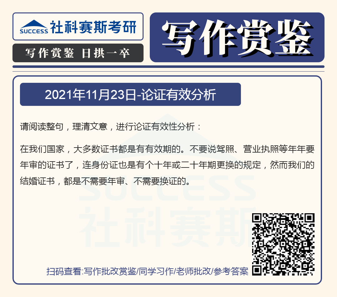 以上就是“2022MBA寫作:2022MBA聯(lián)考寫作批改賞鑒及參考答案(11月23日)”的全部內(nèi)容,更多寫作精選習(xí)題,請持續(xù)關(guān)注社科賽斯MBA備考網(wǎng)!