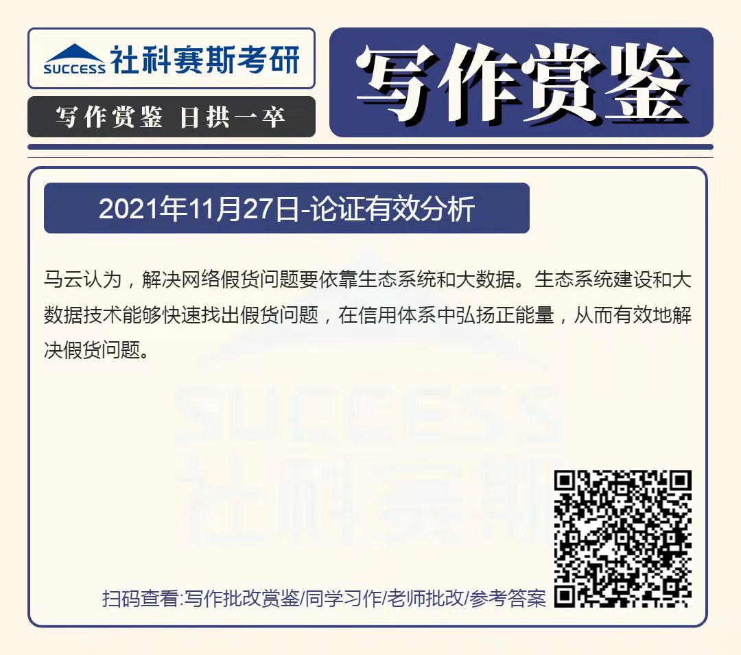以上就是“2022MBA寫作:2022MBA聯(lián)考寫作批改賞鑒及參考答案(11月27日)”的全部內(nèi)容,更多寫作精選習(xí)題,請持續(xù)關(guān)注社科賽斯MBA備考網(wǎng)!