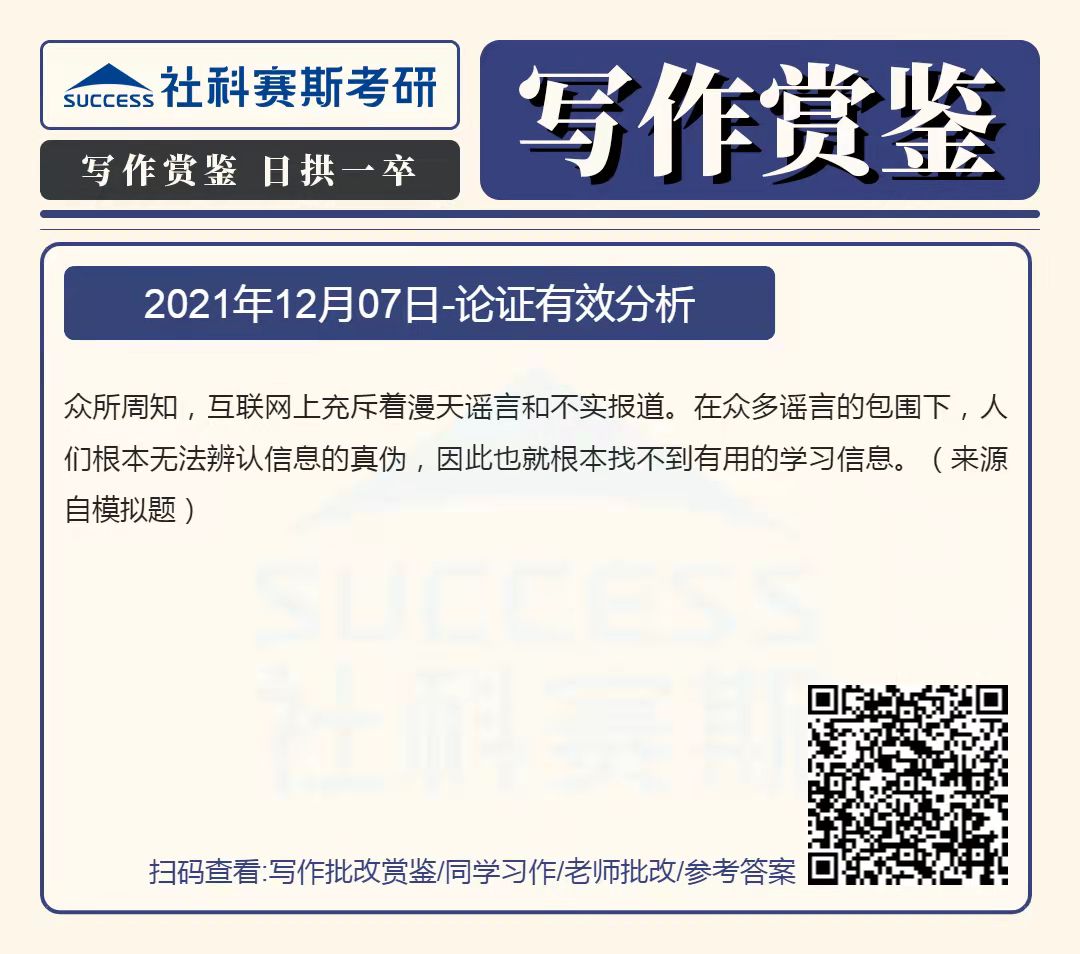 以上就是“2022MBA寫作:2022MBA聯(lián)考寫作批改賞鑒及參考答案(12月7日)”的全部內(nèi)容,更多寫作精選習(xí)題,請(qǐng)持續(xù)關(guān)注社科賽斯MBA備考網(wǎng)!