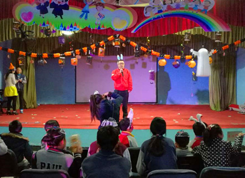 10月31日下午,二外MTA/MBA教育中心同學(xué)一行18人在中心駱欣慶主任的帶領(lǐng)下赴北京順義區(qū)趙全營鎮(zhèn)太陽村舉行了主題為《狂歡萬圣節(jié)情系太陽村》的公益活動。