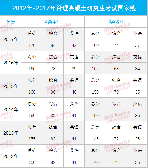 同時(shí),我們可以對(duì)比一下過(guò)去幾年里管理類專碩復(fù)試國(guó)家線: