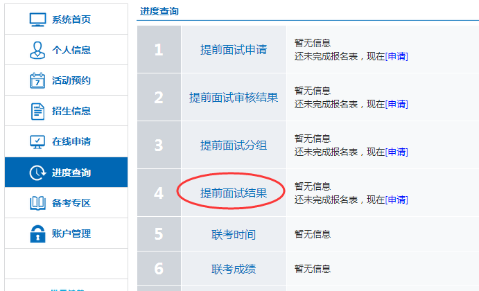 第二步:點(diǎn)擊“進(jìn)度查詢(xún)”可查詢(xún)面試結(jié)果