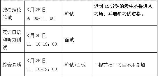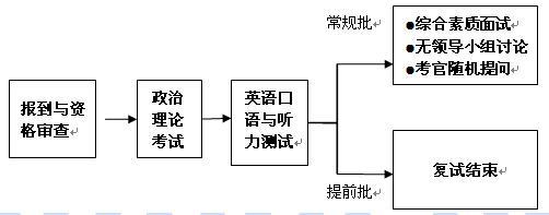 復(fù)試分為政治理論筆試、英語(yǔ)口語(yǔ)與聽(tīng)力測(cè)試、綜合素質(zhì)面試三部分,總分為300分。