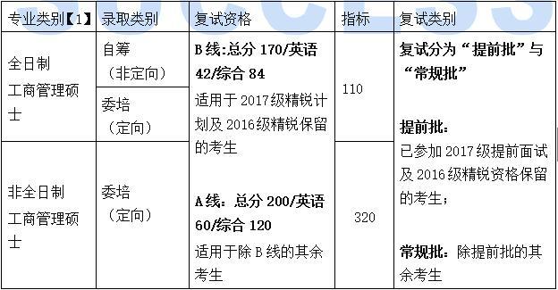 (1)所有參加面試考生按照全日制工商管理碩士、非全日制工商管理碩士分別排名,按優(yōu)先錄取第一專業(yè)志愿考生(即在中國(guó)研究生招生信息網(wǎng)上所填報(bào)的專業(yè)類別)原則,以總成績(jī)(聯(lián)考成績(jī)×50%+復(fù)試成績(jī)×50%)實(shí)行從高到低順序錄取,總成績(jī)相同的考生,則按照考生類別(即精銳計(jì)劃、新銳計(jì)劃、未參加提前面試的考生)依次進(jìn)行錄取。同一類別考生,若總成績(jī)相同,則按照“政治+英語(yǔ)”的復(fù)試成績(jī)進(jìn)行排名,從高到低依次錄取。