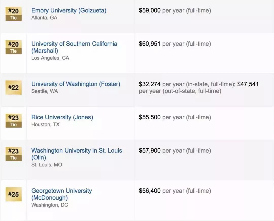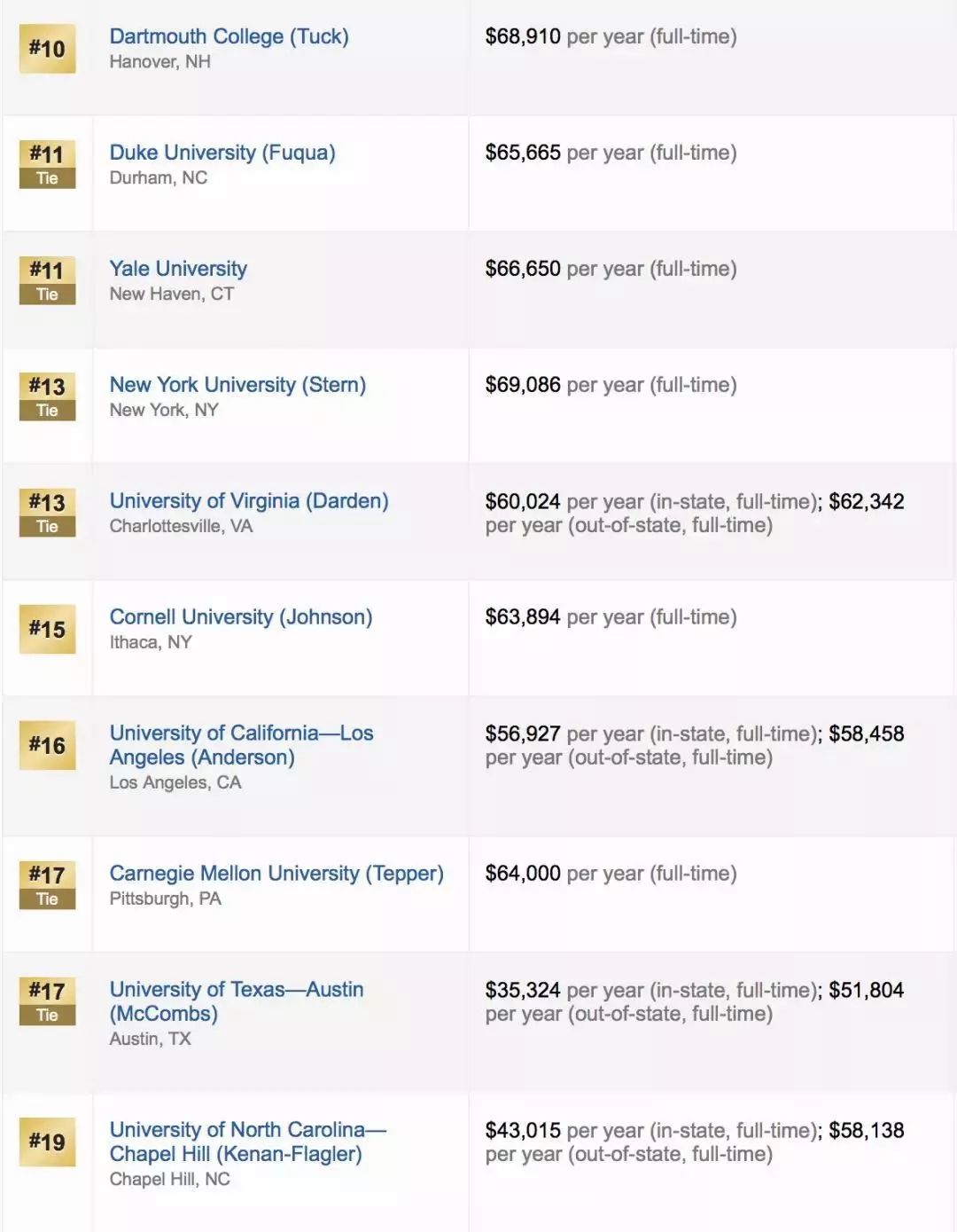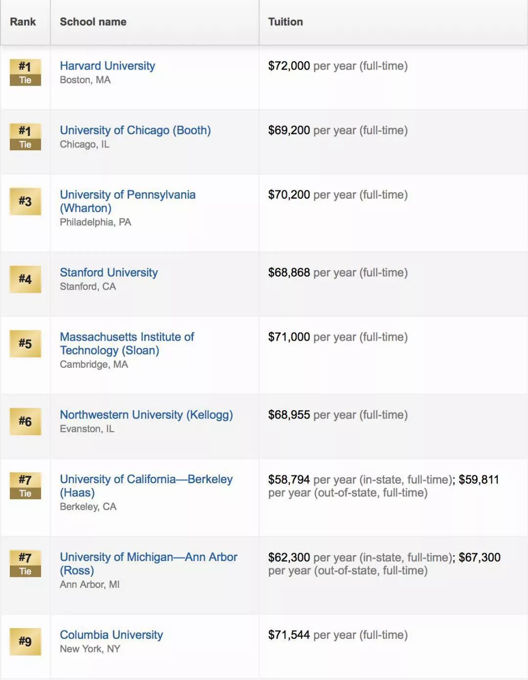 總而言之,再好的排名都好不過一所適合自己的學(xué)校,Rankings可以參考,也是很好的指標(biāo),但最重要的是Follow Your Heart!MBA申請不能慫,面對各種挑戰(zhàn)要勇敢面對。最后,為大家奉上今年US News榜單,希望能夠?yàn)槟愕倪x校指點(diǎn)迷津。