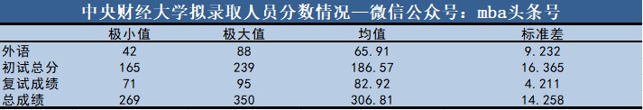 另外,來看看央財(cái)2018擬錄取考生的筆試分?jǐn)?shù),央財(cái)考生英語單科均值65分,這也是跨考MBA-英語名師邵寧老師一直要求大家單科保障60分以上的建議。