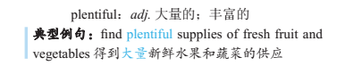 導(dǎo)讀:本期單詞 plentiful ( adj 大量的;豐富的),配以音頻,全方位學(xué)習(xí)